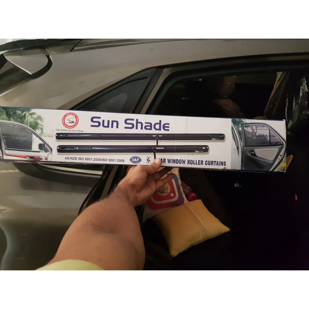 Rolls up and down automatically when your window down and up. An aluminum tube with the sunshade and hook is attached to the sunshade to following the window up and down. Imported fabric restricted the light which comes from outside so outside people are unable to see inside the car, but people from inside can see the outside because it is a one-sided sunshade. It provides more privacy while driving the car.
