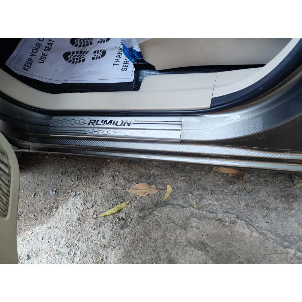 These scuff sill plates are only compatible with Toyota Rumion 2023 Onwards . Sill plates sometimes we call scuff plates or sill guards, The sill plate is used to protect your car's interior door sills from scratches. This sill plate is built with fine SS material and also your car name logo is a mask for enhancing the look of your car. It is very easy to install because double-sided adhesive tape is attached to the backside. Installation process you can do by yourself also.